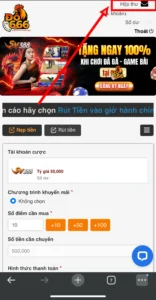 Tại giao diện nạp tiền, bạn chú ý vào biểu tượng [Thông Báo] thường nằm ở phía trên cùng bên phải màn hình. Đây là nơi hệ thống gửi các dữ liệu định danh quan trọng dành riêng cho bạn.
